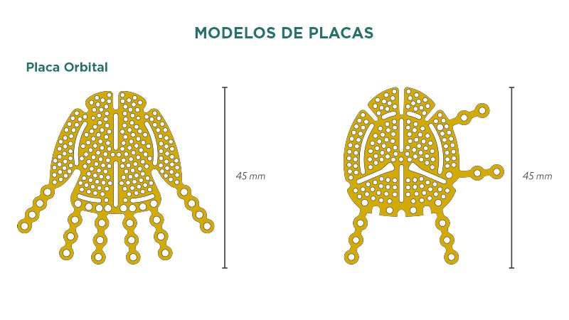 • Placas de perfil intermediário com ótima adaptação anatômica, inclusive para região orbital